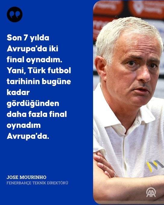 在过去的7年里,我在欧战比赛中踢进了两次决赛。这意味着,过去7年我在欧战参加的决赛次数,比土耳其足球历史上任何时期都要多。是的,距离我带波尔图夺冠已经过去大约21年了。但就在这7年间,我依然在欧洲赛场闯进决赛。
